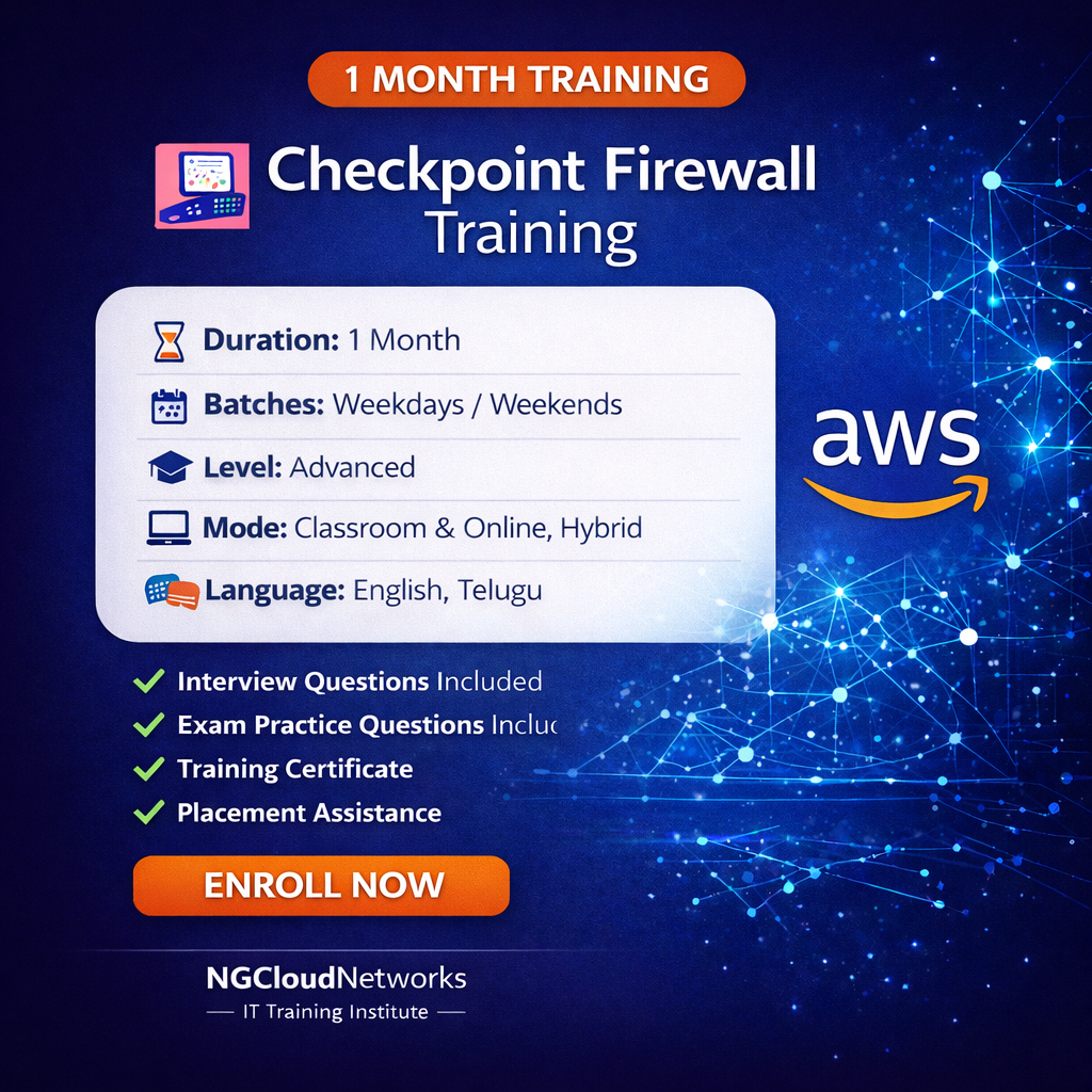 The Check Point Firewall Training program is designed to provide in-depth knowledge and practical skills required to configure, manage, and troubleshoot Check Point firewalls in real-world network environments.