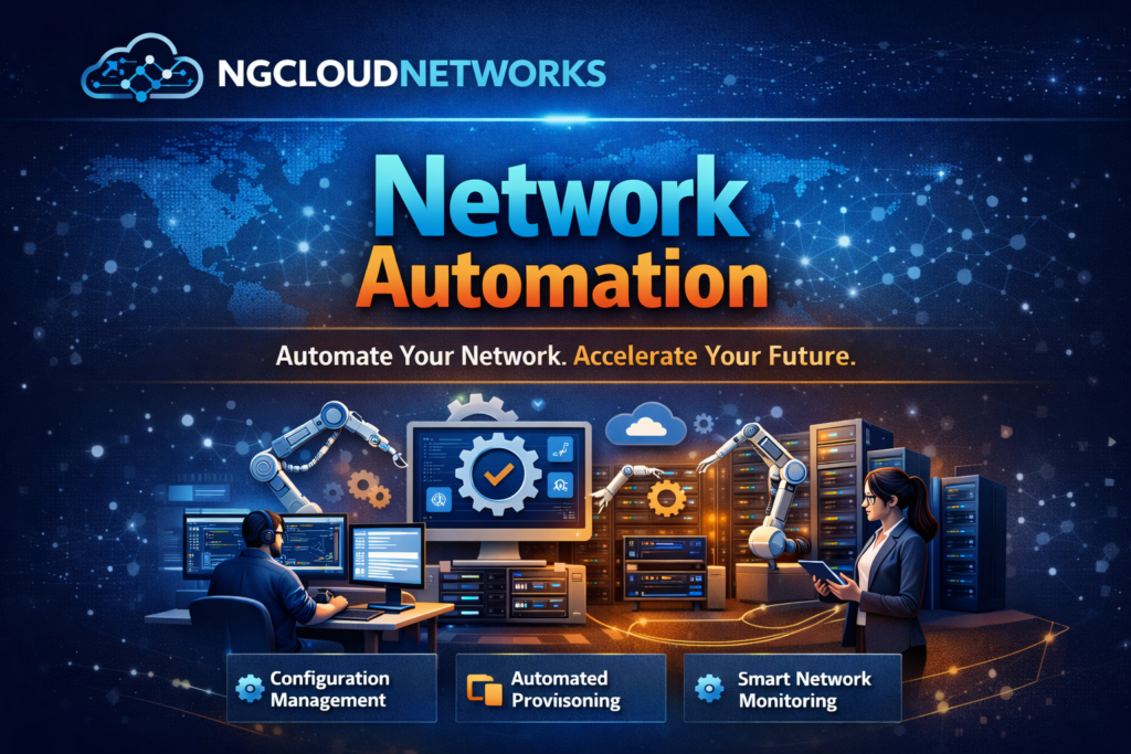 At NGCloudNetworks, this network automation course focuses on automating routers, switches, firewalls, and cloud networks using modern tools.